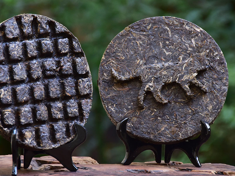+ Hình dáng: Bánh trà ép chặt, mặt ngoài phủ một lớp nhựa (cao) trà, ích cho việc bảo quản, chống khí hậu nồm ẩm, chống mốc, trà lên men ổn định trong mọi điều kiện thời tiết. Màu xanh trong cánh trà ép bánh sẽ ngả thẫm dần theo thời gian.