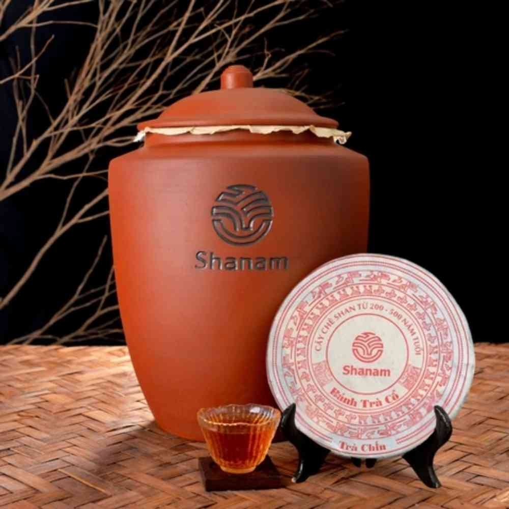 Cùng là nguyên liệu như trà sống – sử dụng giống trà Shan Tuyết Cổ Thụ hoang dã ở  vùng nguyên liệu Shanam khai thác là Tà Xùa, Bắc Yên, Sơn La người làm trà Shanam cho trà lên men, đem ép bánh, hợp dùng thường ngày cải thiện sức khỏe, thúc đẩy trao đổi chất trong cơ thể.