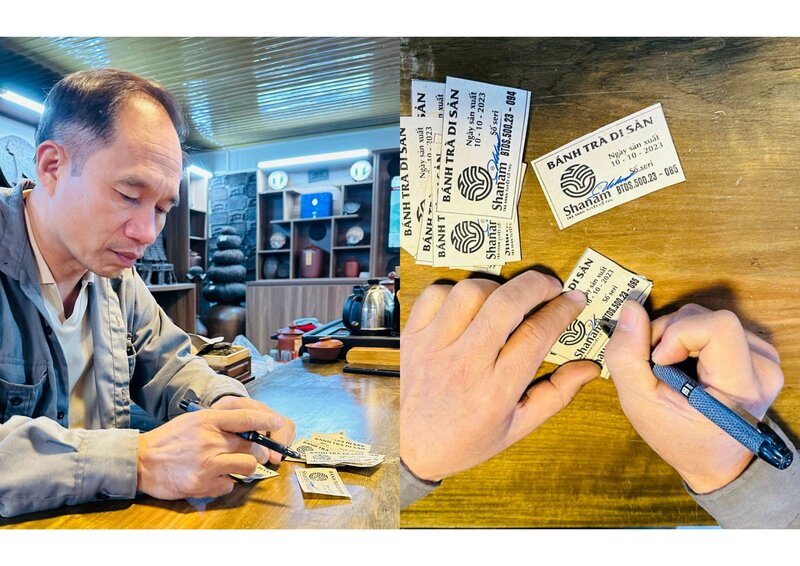 Bánh trà Di sản Việt Nam năm 2023 sản xuất số lượng giới hạn 500 bánh, được đánh mã số từng bánh trà theo thứ tự từ 1 – 500 và có chữ ký trực tiếp của người sáng lập thương hiệu trà Shanam Phạm Vũ Khánh trên từng bánh trà. Mỗi bánh trà có QR riêng truy suất về website www.shanam.com.vn chứng minh chủ sở hữu của bánh trà.