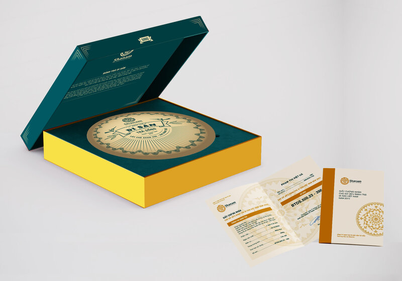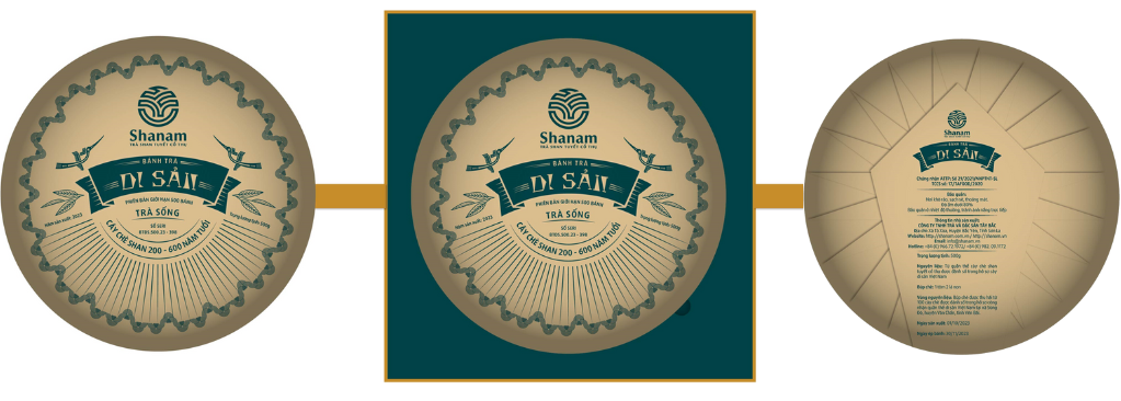 Bánh trà Di sản Việt Nam năm 2023 sản xuất số lượng giới hạn 500 bánh, được đánh mã số từng bánh trà theo thứ tự từ 1 – 500 và có chữ ký trực tiếp của người sáng lập thương hiệu trà Shanam Phạm Vũ Khánh trên từng bánh trà. Mỗi bánh trà có QR riêng truy suất về website www.shanam.com.vn chứng minh chủ sở hữu của bánh trà.