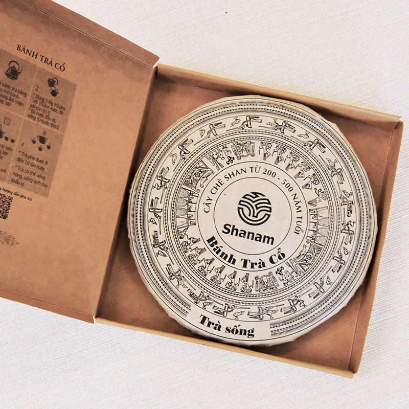 Bánh Trà Cổ (Trà Phổ Nhĩ) thương hiệu Shanam là loại trà đặc biệt, sử dụng nguyên liệu từ giống trà Shan Tuyết Cổ Thụ hoang dã ở vùng Tà Xùa - Sơn La, Sùng Đô - Yên Bái. Cây chè mọc tự nhiên, hoang dã ở độ cao trên 1600m so mực nước biển, quanh năm sương mù bao phủ. Tuổi cây Chè từ trên 100 năm đến vài trảm năm tuổi, trà được lên men tự nhiên theo thời gian, để càng lâu chất lượng trà càng tốt.